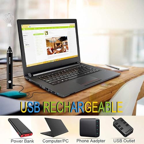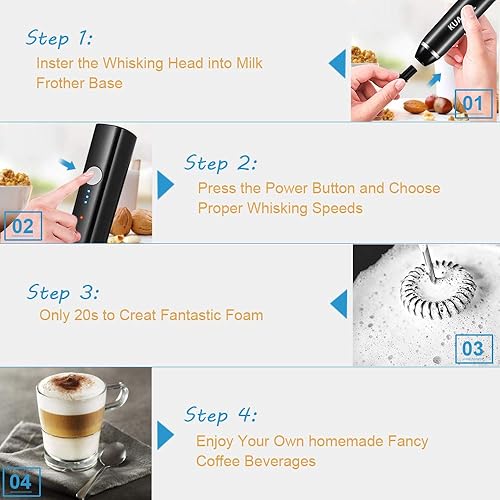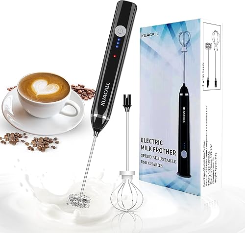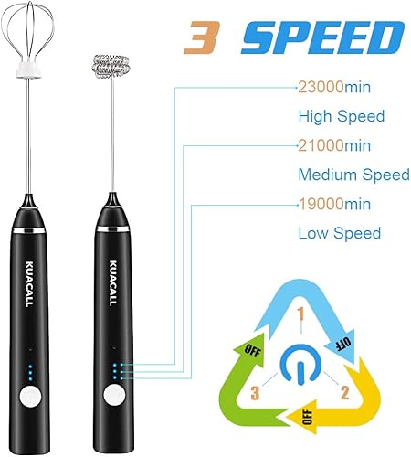 Mousseur à Lait Électrique, KUACALL Mousseur à lait à main USB Rechargeable avec Dual Fouet Tête Trois Vitesses Réglable Batteur à Oeufs pour Mousse Cafés Crème Latte Cappuccino Multi-Mixeur Portable