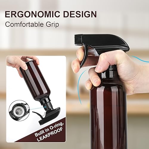 Hokretme Lot de 2 vaporisateurs vides en plastique - 500 ml - Résistants - Pour solutions de nettoyage, huiles essentielles, cheveux, cuisine (ambre)