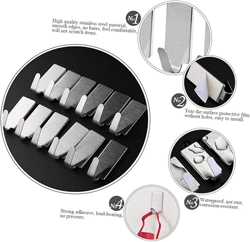 Tofficu 30pièces Crochets Auto-adhésifs Acier Inoxydable Lot De Crochets Forts Sans Perçage Pour Cuisine Et Salle De Bain Charge Maximale