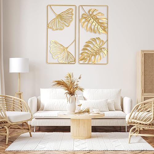 BYERZ Décoration murale en métal doré, 2 décorations murales en feuille d'or Forts Sens Artistiques fréquemment utilisés pour le bureau