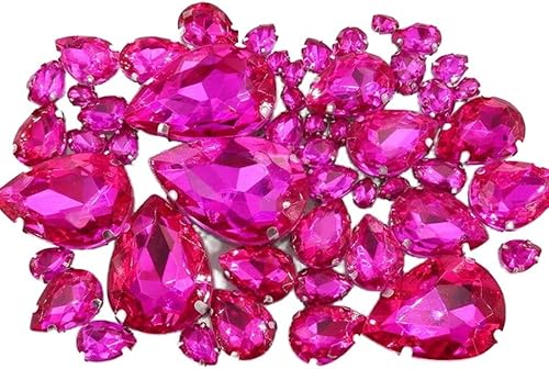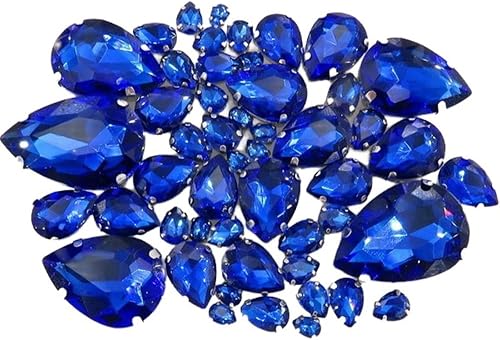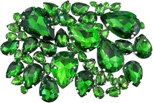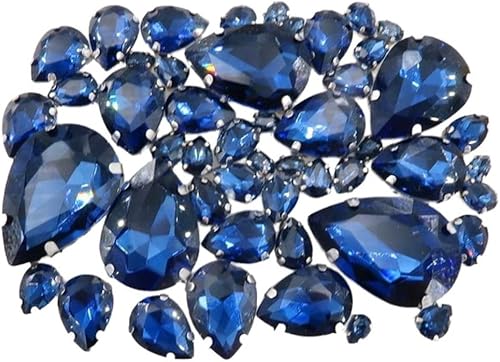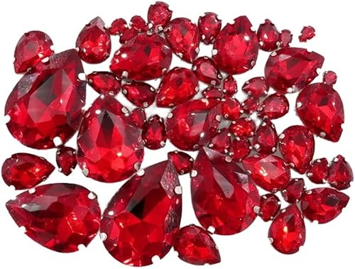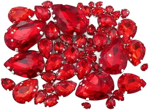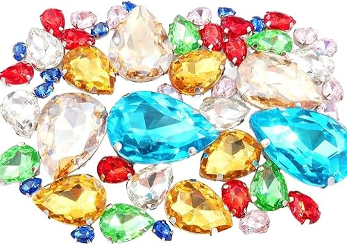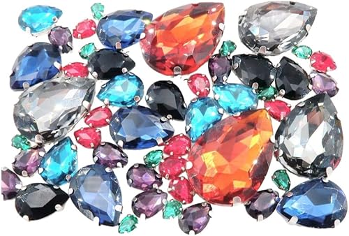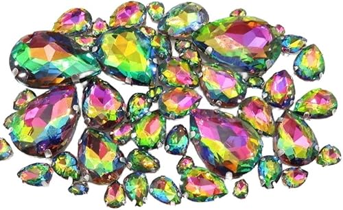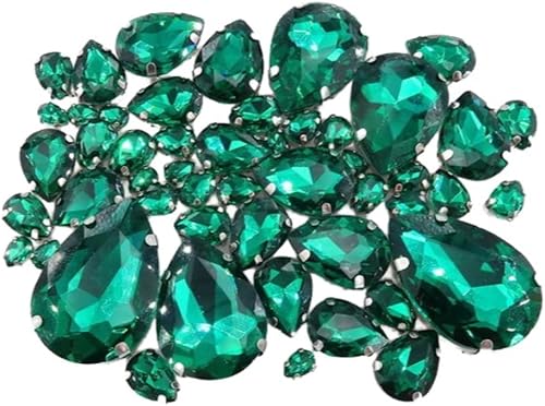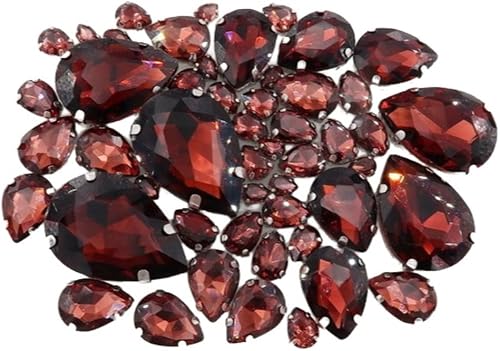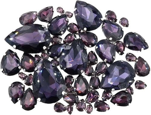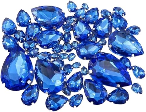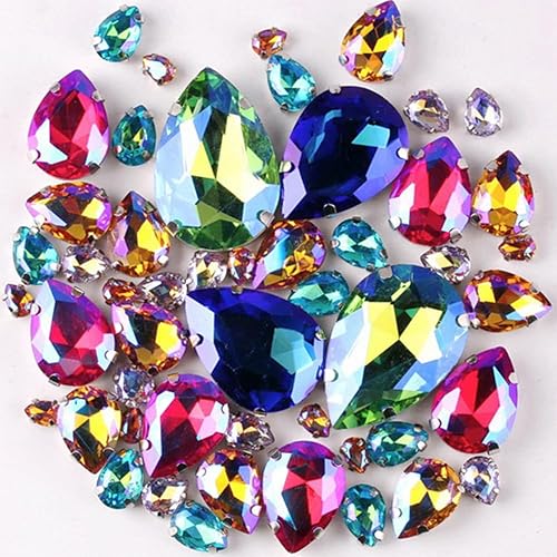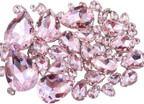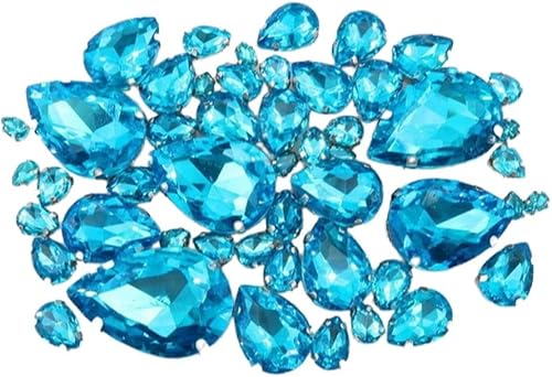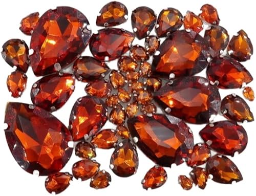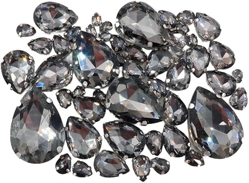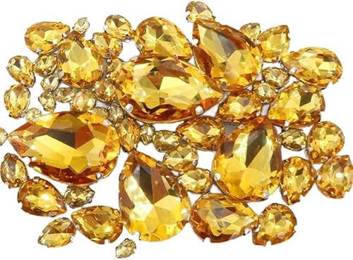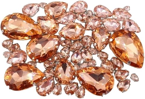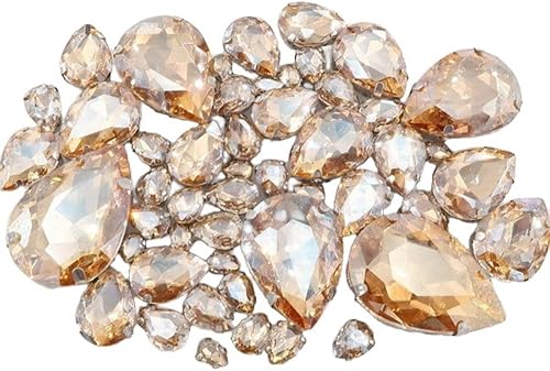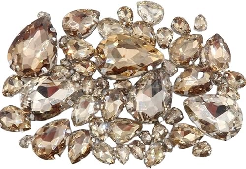 Whakano Lot de 50 strass à coudre - En forme de goutte d'eau - Strass en verre - Strass avec trou - Pour bricolage, vêtements, chaussures, sac, décoration - Marron clair