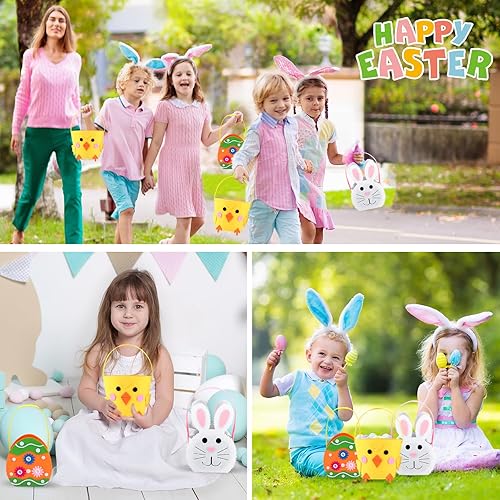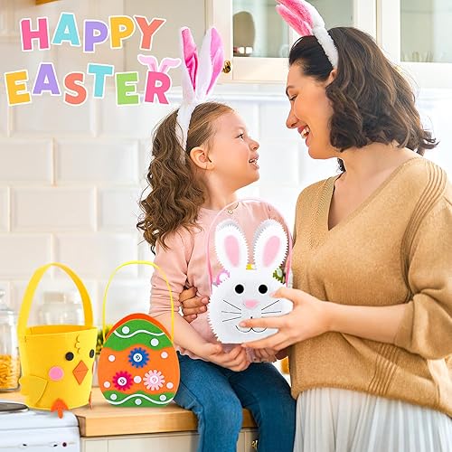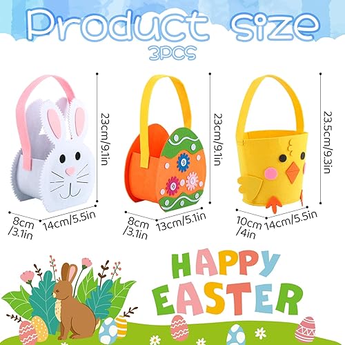 Yanghad Panier de Pâques en Feutre à Remplir, 3 Pièces Panier de Paques Enfant, Sacs à Oeuf Fourre Tout Couleur, pour Chasse aux Oeufs de Pâques