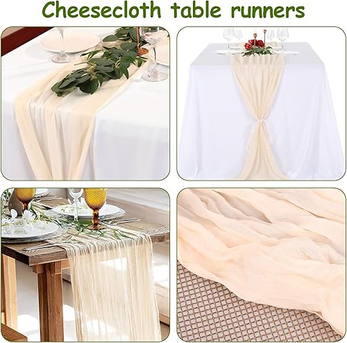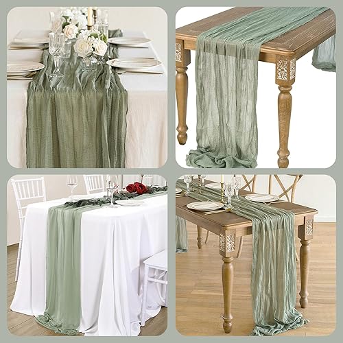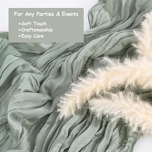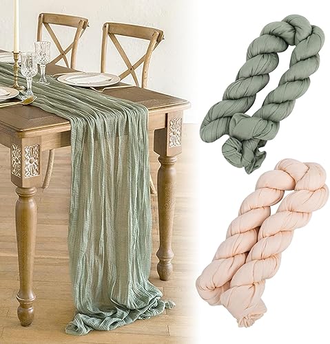 DMJJSD Lot de 2 chemins de table - 90 x 300 cm - Avec tissu à fromage - En mousseline de soie - Beige et vert - Style bohème - Rustique - Décoration de table pour mariage/anniversaire