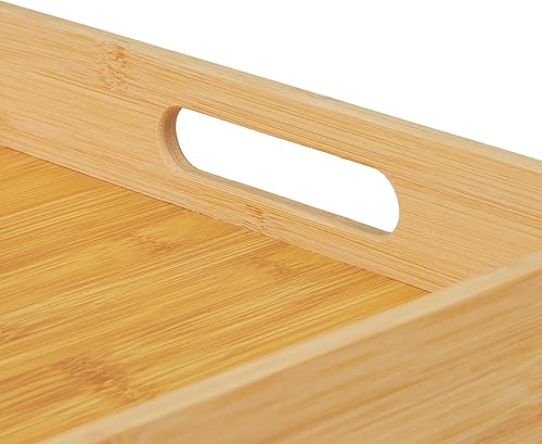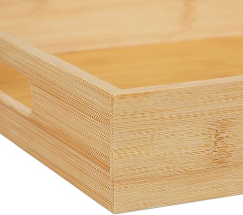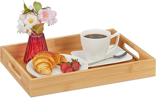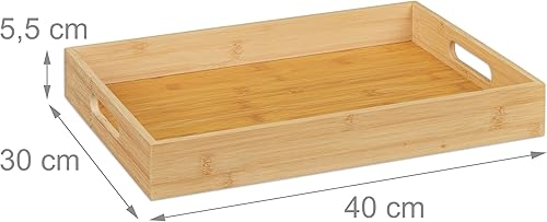 Relaxdays Plateau en Bambou, HxLxP : 5,5x40x30 cm, Tablette de Service avec poignées, Bord élevé, rectangulaire, Nature