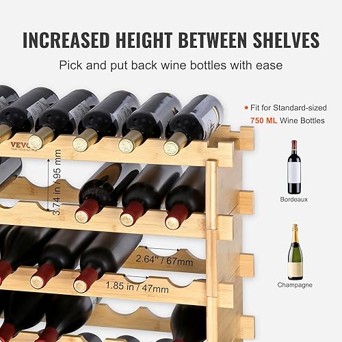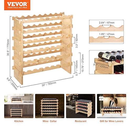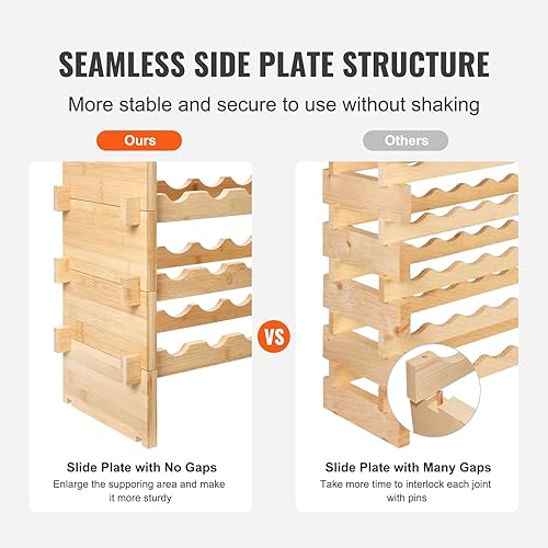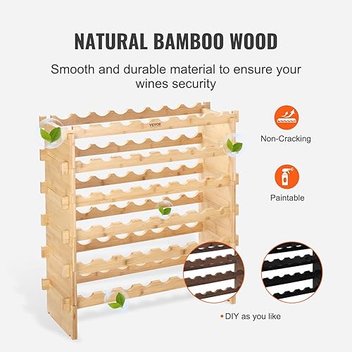 VEVOR Étagère à Bouteilles Modulable 48 Bouteilles 6 Niveaux Casier à Vin Empilable Porte-Bouteilles en Bambou Naturel 76,5x25x77,5 cm Rangement Présentation de Vin pour Cuisine Garde-Manger Cave Bar