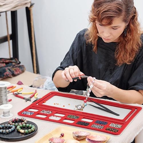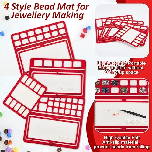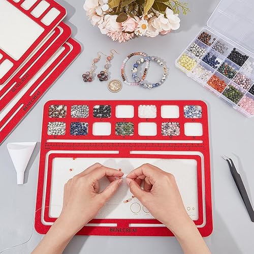 BENECREAT 4 Styles Planches de Conception de Perles Rouge, Plateau de Perles à Dos Rigide avec Grilles, Tampons de Perles, pour la Fabrication de Bijoux, Épaisseur de 6mm