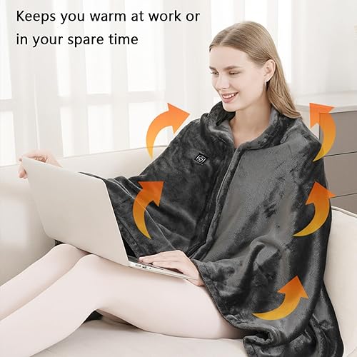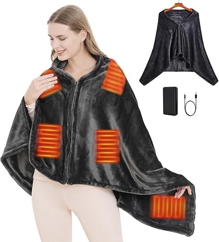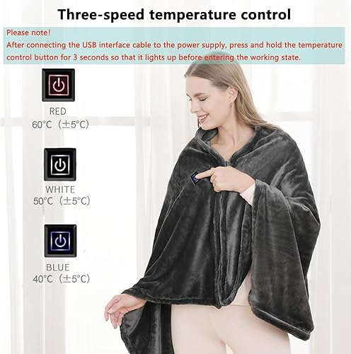 SNZ Couverture Chauffante USB avec Batterie 10000mAh, 150 x 80 cm Plaid Chauffant, 3 Niveaux de Température Coussin Chauffant, Electric Blanket pour la Pause Déjeuner au Bureau, Voyage en Extérieur