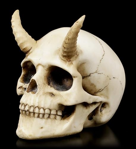 Figuren Shop GmbH Tête de mort gothique avec cornes – Demon diabolique | Crâne fantaisie peint à la main