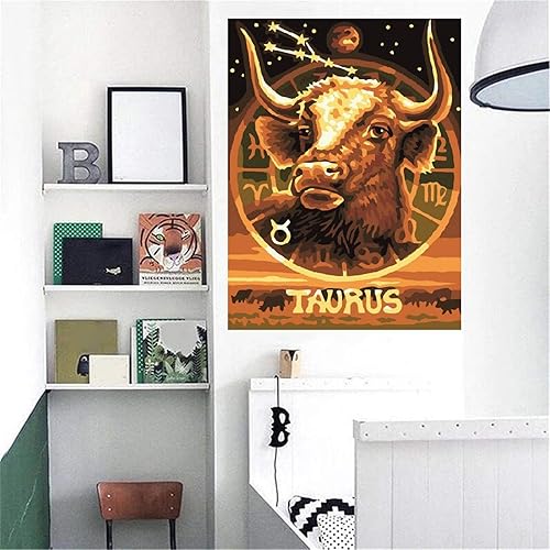 5D Bricolage Diamond Painting Full Drill Diamant Peinture Douze Constellations Taureau Point de Croix Broderie Paint by Numbers Kits Art pour Salon Décor à La Maison Square Drill,12x16inch/30x40cm