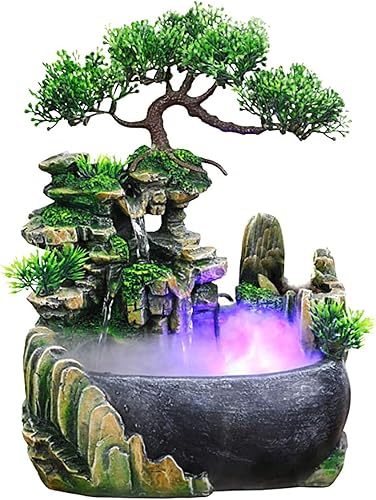 Jeffergarden Fontaine d'intérieur, Table Indoor Fountain Interieur Deco de Méditation Zen Salon Cascade Bureau Décoration lumière LED de Caractéristique de l'eau intérieur Caractéristique