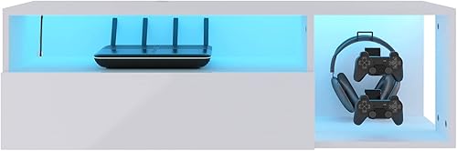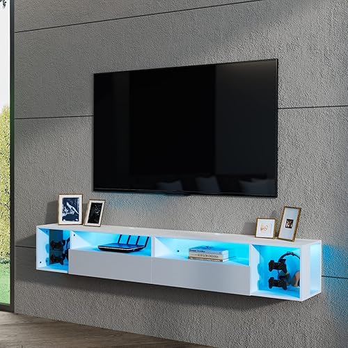 soges Meuble TV Suspendu pour Centre de Divertissement avec Lumières LED, 100cm Banc TV Mural avec Gestion des Câbles, Banc TV Blanc