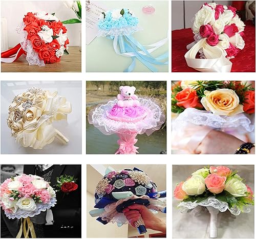 Lot de 6 colliers à 4 couches de fil ondulé en dentelle pour bouquet de mariage, accessoires de mariage (blanc-1)