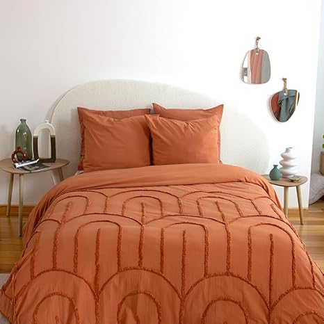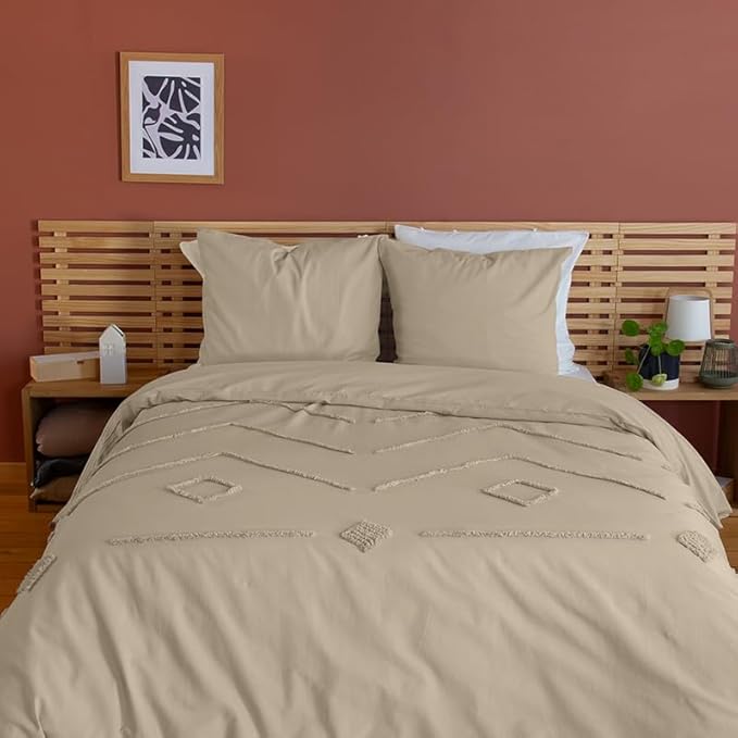 CÔTE DECO Parure de lit 220x240 cm Adulte - Housse de Couette 220x240 cm + 2 Taies d'oreiller 63x63 cm Motif géométrique – Set de Housse de Couette 100% Coton lavé (Arche Rouge)