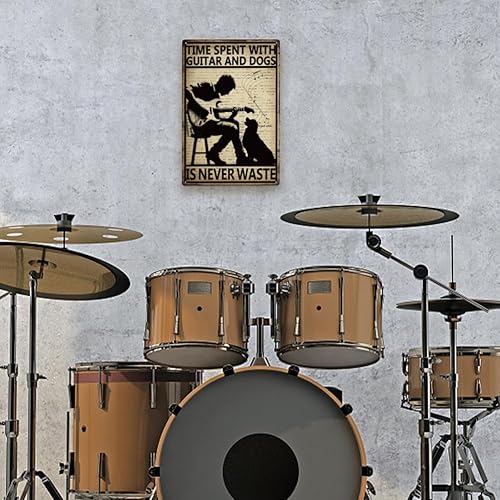 SUPERDANT Plaque Metal Vintage pour Guitare avec Chien Plaque Vintage Metal le Temps Passé Sur la Guitare et le Chien N'Est Jamais Perdu Plaque Murale Decorative de Musique Rock Deco Vintage