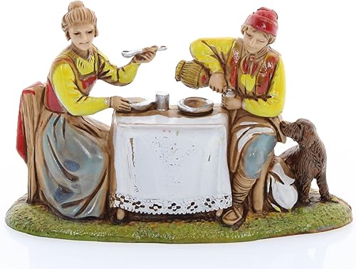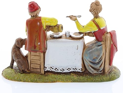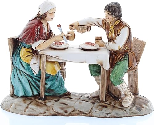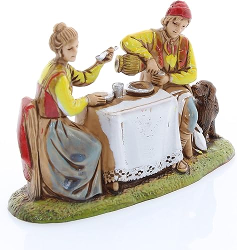Moranduzzo Homme et Femme à la Table pour Crèche de 10 Cm Échelle 1:20-Figurines de Crèche Indestructibles-Style 700',Peinture Finition à la Main,Produit Officiel,Fabriqué en Italie,Sculpteur M. Landi