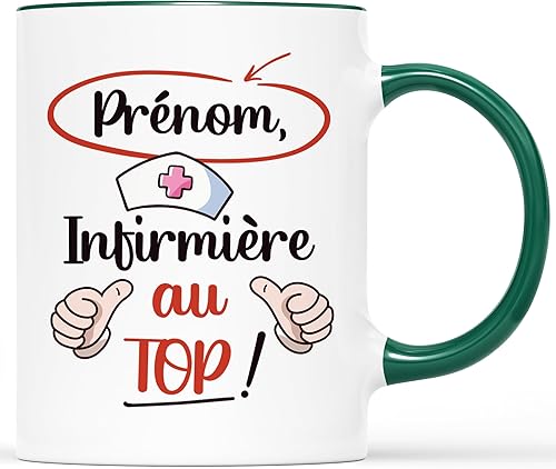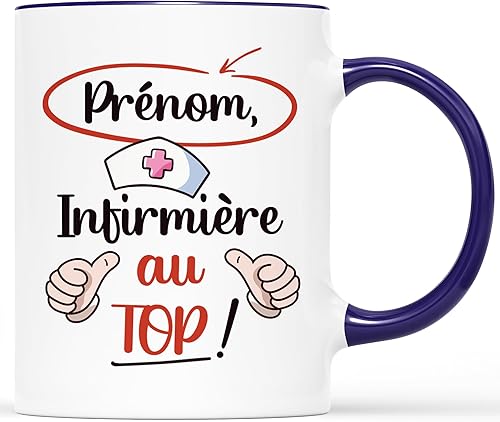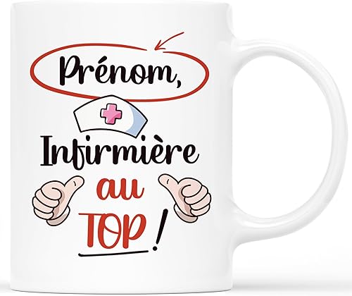 CADEAU PLUS Mug Personnalisé Prénom - Infirmière Au Top - Cadeau Drôle Collègue, Rigolo, Idée Pour Infirmière, Tasse