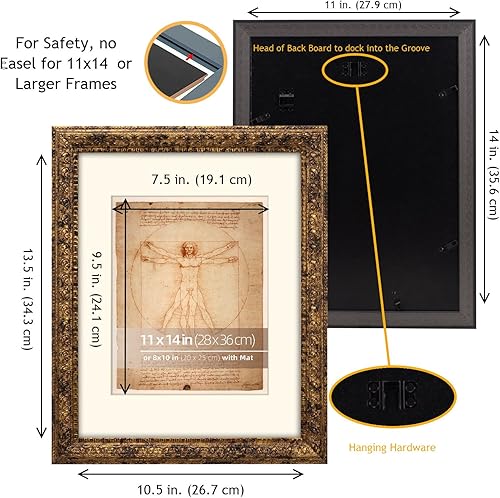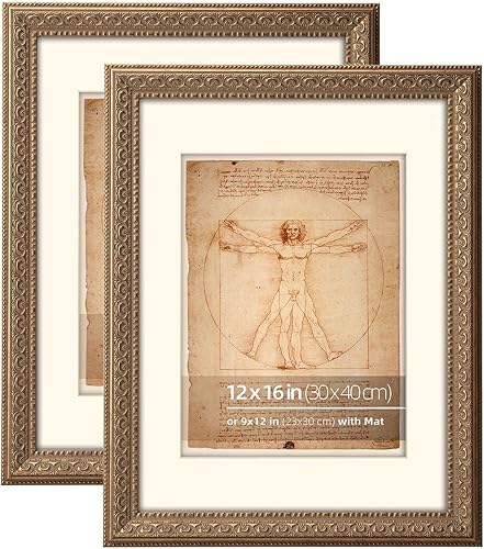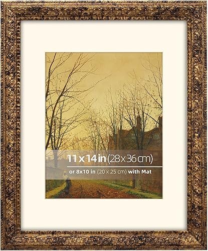 Eitida cadre photo orné rustique 20x25 cm, passe-partout pour photos 13x18 cm, protection en verre véritable, présentation sur table ou au mur