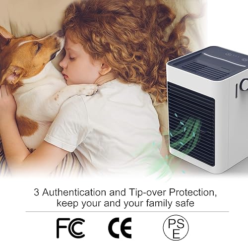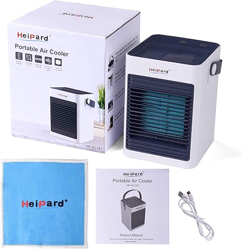 HeiPard Refroidisseur d'air Portable, Mini Ventilateur USB pour Espace Personnel, Protection Contre Le Renversement, étanche, humidificateur et purificateur, pour la Maison, Le Bureau, Les Voyages,