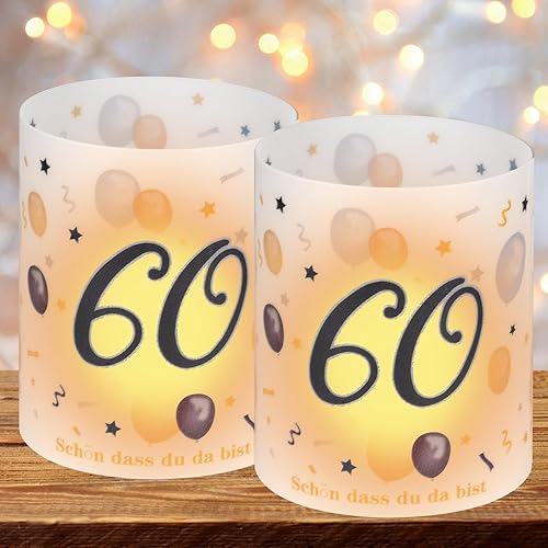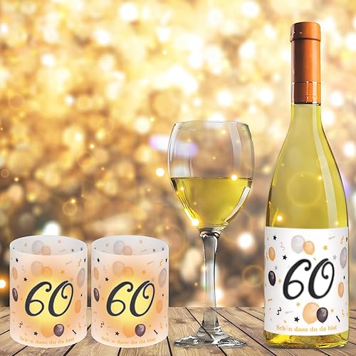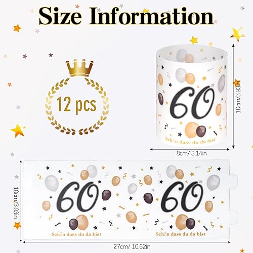 Lot de 12 photophores décoratifs de table pour 60 ans, pour 60 ans, pour homme et femme, avec inscription « Happy Birthday »