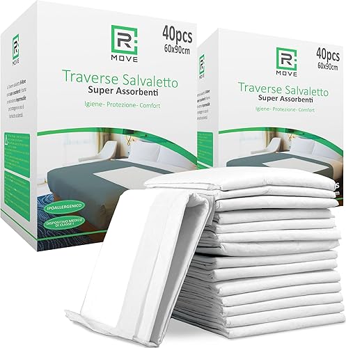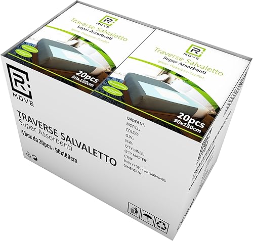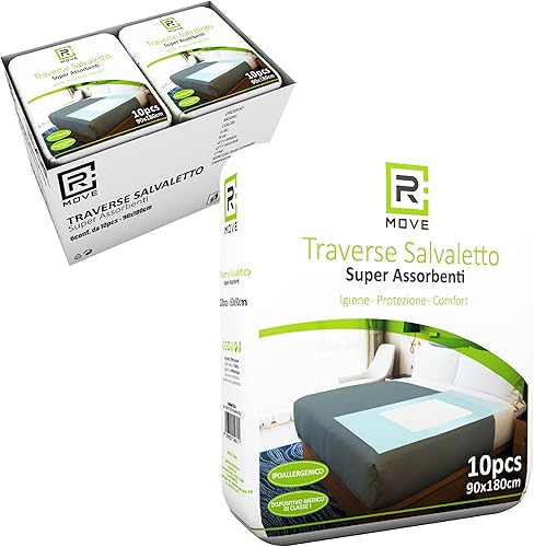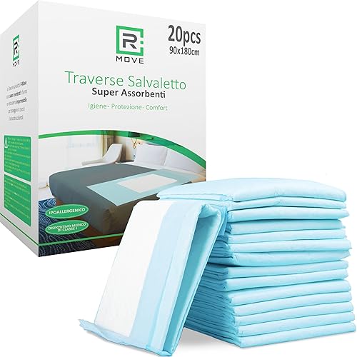 R MOVE Traverses absorbantes renversables jetables pour lit 90 x 180 cm, traverses lit jetable, traverses lit pour Personnes âgées (90 x 180 cm Lot de 60)