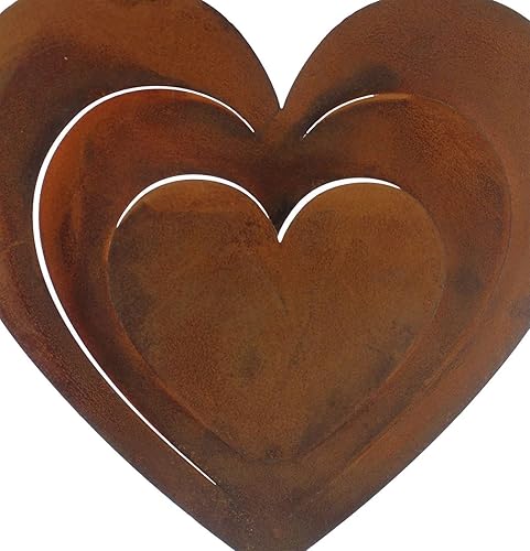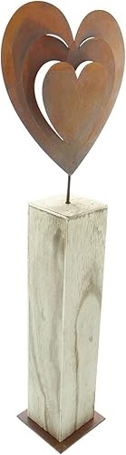 Colonne Décorative en Forme de Cœur Rouillé - 72 cm de Haut, Grand Cœur en Métal Aspect Rouille, Bois, Décoration d'Entrée et de Bienvenue