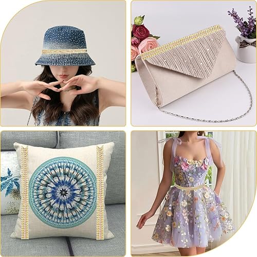 CABODYALS Ruban Adhésif Thermofusible Simple Face avec Strass Dorés de 4.57 m pour Couture Fabrication de Bijoux Décoration de Robe de Mariée Bricolage