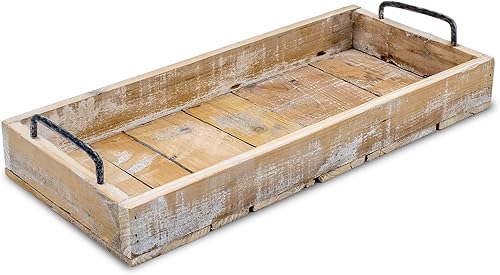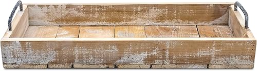 Plateau décoratif en bois aspect usé avec poignées en métal – 45 x 20 cm – Plateau rectangulaire pour servir et bougies – Plateau à bougies – Plateau de service de table décoratif pour bougies –