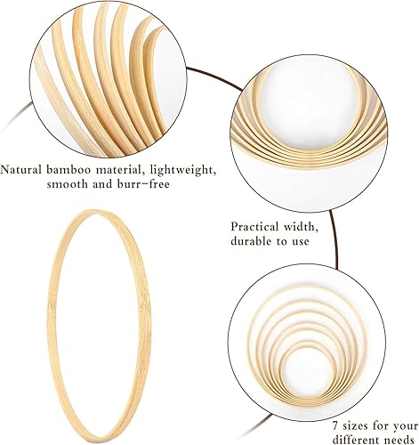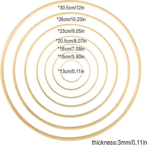 Anruyi 14PCS Cercle en Bambou, Cercle Attrape Reve Anneau pour Couronne Cercle en Bois Macramé 13/15/18/20,5/23/26 /30,5 cm pour Décoration de Couronne de Mariage, Attrape-Rêves et Macramé