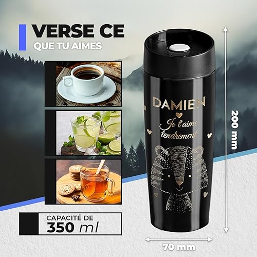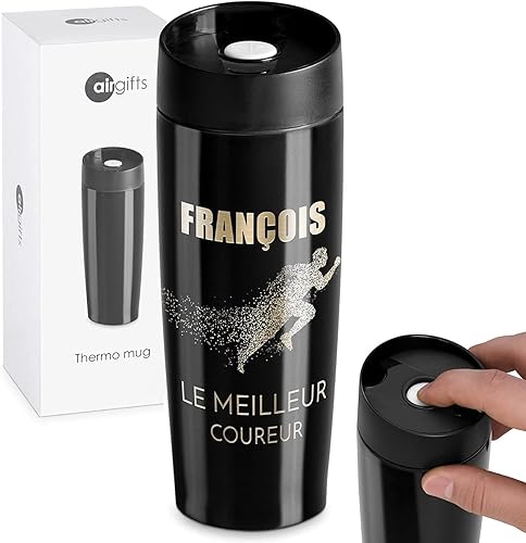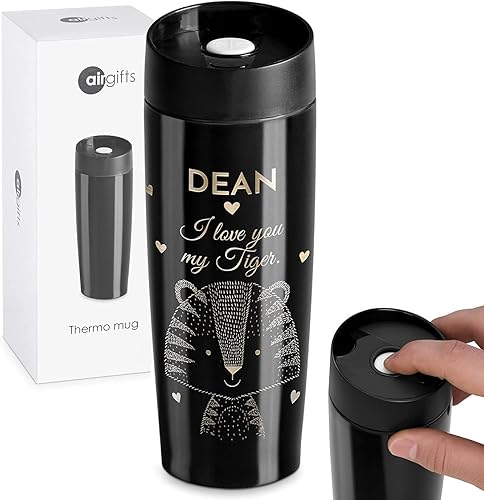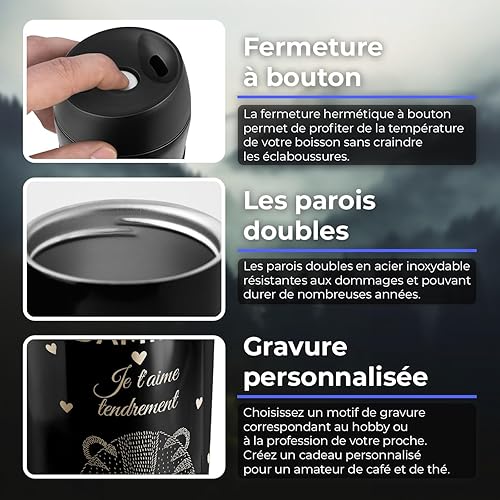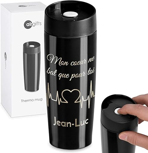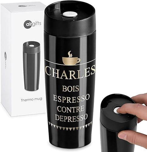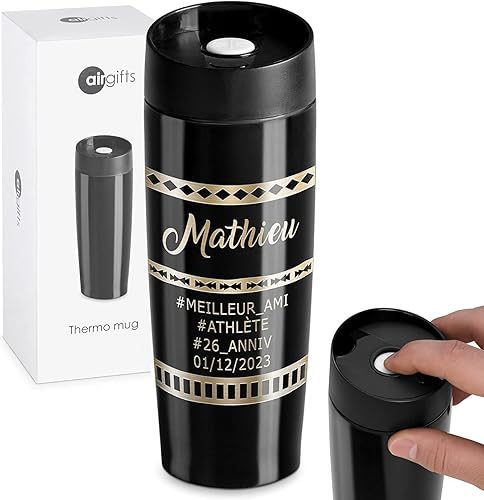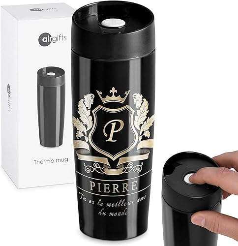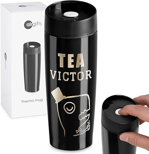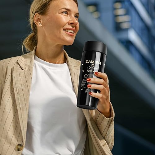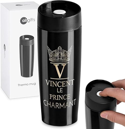 Maverton Thermo Mug Noir pour lui - Thermos Café-Thé - Mug isotherme de 35 cl - Fermeture à Pression - En acier inoxydable - Cadeau d’anniversaire pour chaque homme - Prince