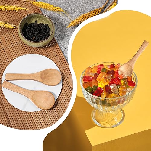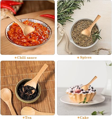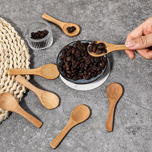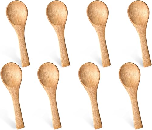 Lot de 8 petites cuillères en bois faites à la main - Petites cuillères en bois de 9,6 cm - Petites cuillères en bois pour verres, mini cuillères en bois - Petites cuillères pour pots à épices, sel,