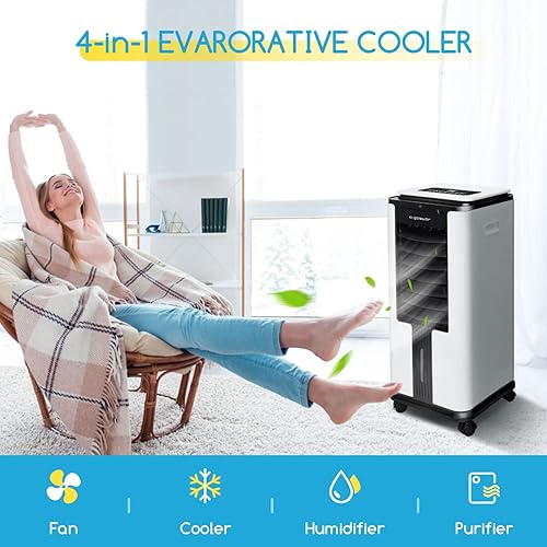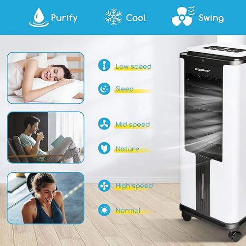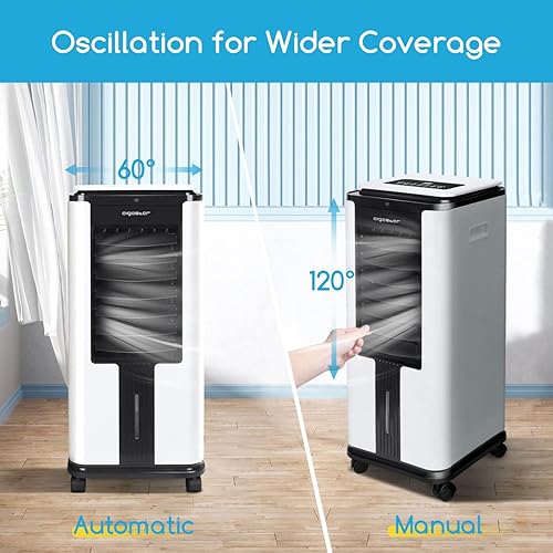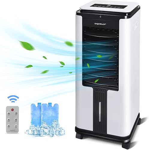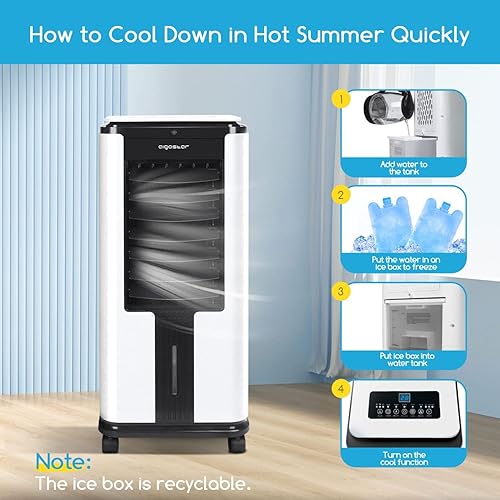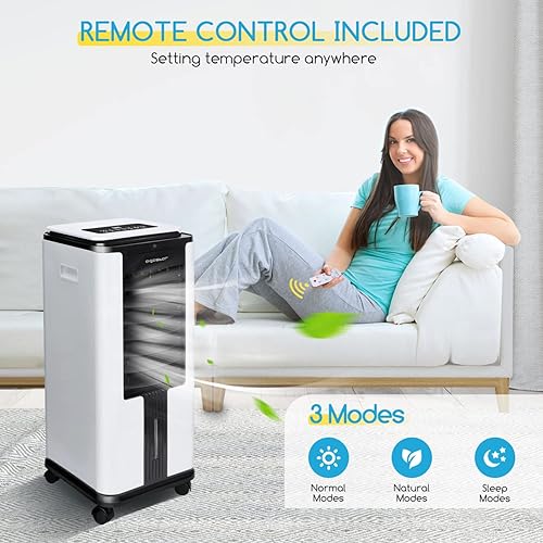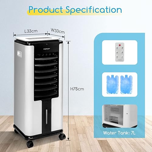 Aigostar Elsa 33QNU – Rafraîchisseur d’air avec télécommande. 75W, 3 modes, idéal pour 35m2. Minuterie 12 heures, réservoir de 8L. Blocs réfrigérants inclus. Noir et blanc.(1)