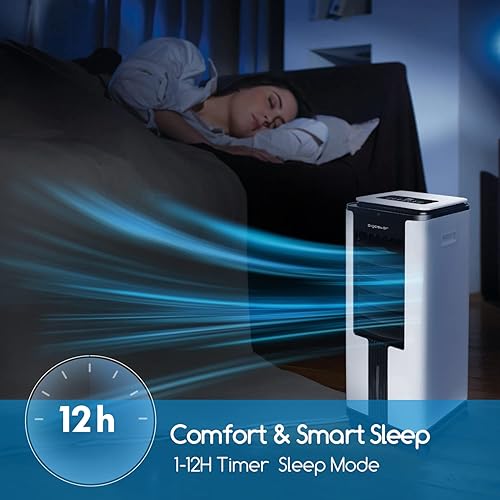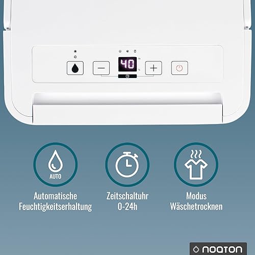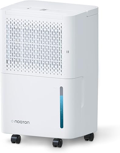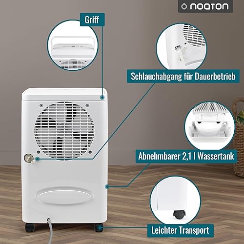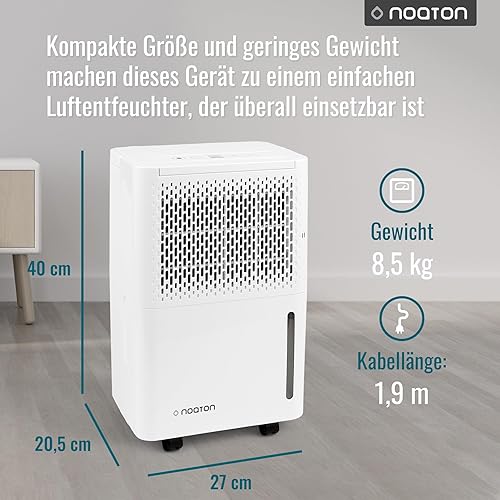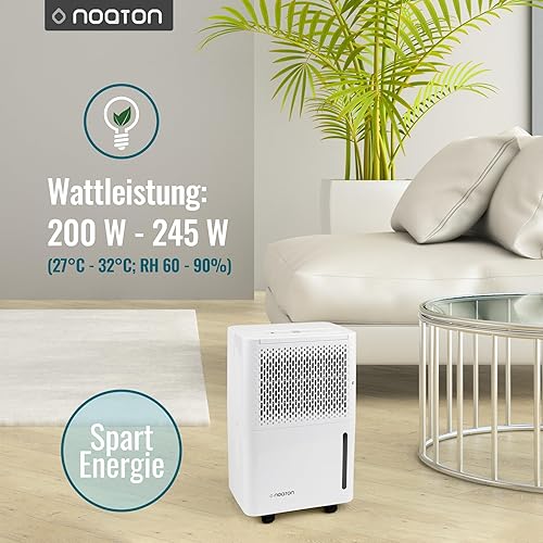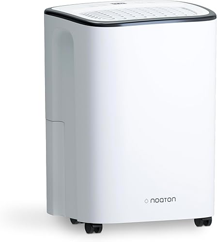 Noaton Déshumidificateur Portable Silencieux, 24L/jour, Minuterie 24h, Réservoir 5,5L, Drainage Continu, avec Dégivrage Automatique, Efficace pour Pièces jusqu'à 45 m², Afficher, Anti Moisissure