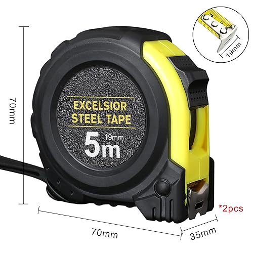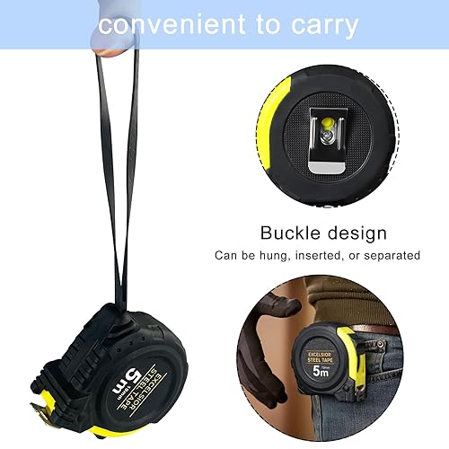 Gentpovth Lot de 2 Rubans à Mesurer enrobés de caoutchouc anti-chocs de 5m, Échelles métriques/impériales,Mètre ruban professionnel robuste d'enroulement,pour soit à la maison,chantiers ou en atelier