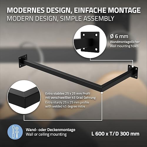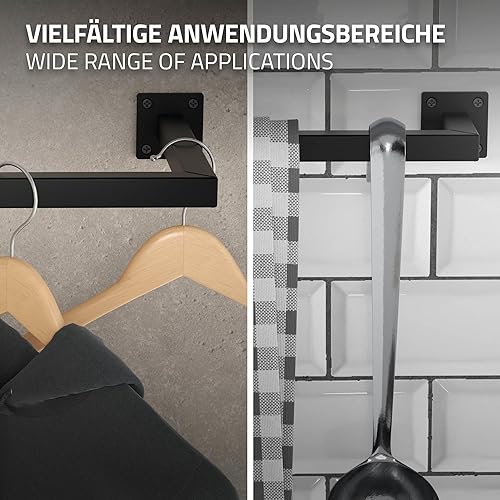 ML-Design Tringle à Vêtements d'angle, P30 x L90 cm, Noir, Acier Inoxydable, Tringle de Penderie Forme de L, Portemanteau à Montage Mural, Porte-vêtements, Tringle à Linge, Matériel de Montage Inclus