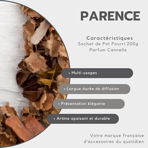 PARENCE.- Sachet de Pot Pourri 200g Parfum Cannelle - Décoration et Parfum d'Ambiance, Naturel, Polyvalent - Cannelle, 200g