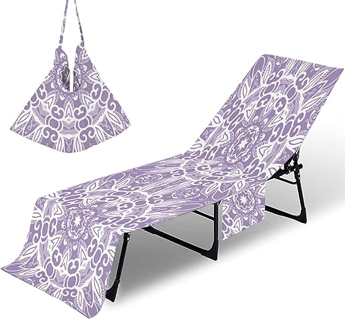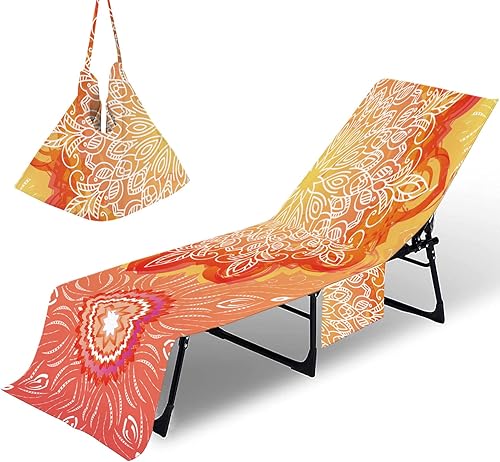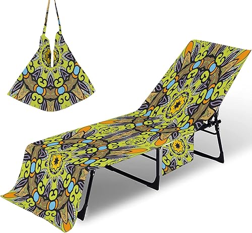 Serviette de plage avec poches – Imprimé géométrique 3D en microfibre pour transat – Housse de chaise longue portable à séchage rapide pour piscine, spa, extérieur (10, 75 x 200 cm)
