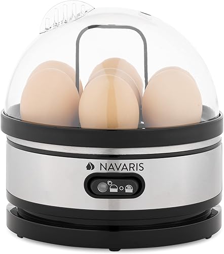 Navaris Cuiseur à Œufs Électrique - Appareil Vapeur pour 1 à 7 Œufs avec Doseur et Perce-Œufs - Œuf à la Coque Mollet ou Dur