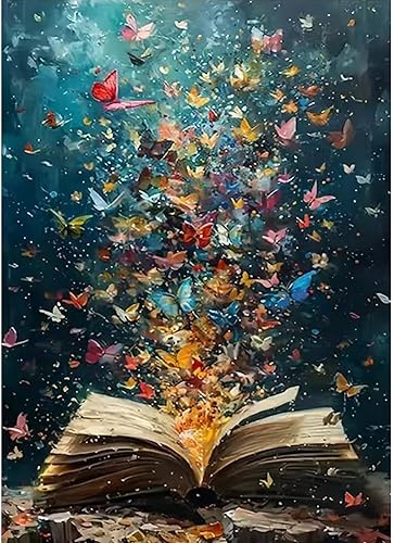 Kit de diamond painting 5D Papillon sur Livre, Livre Magique Diamond Painting, Kit Complet Rond DIY pour Adultes et Enfants, Peinture Diamant artisanat, Peinture Diamant pour Décoration Maison 30x40cm