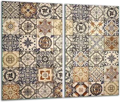 TMK Plaque de protection universelle pour plaque de cuisson 2 x 30 x 52 cm 2 pieces Pour plaques de cuisson Protection contre les éclaboussures Planche a découper en verre trempé Décoration Mosaïque