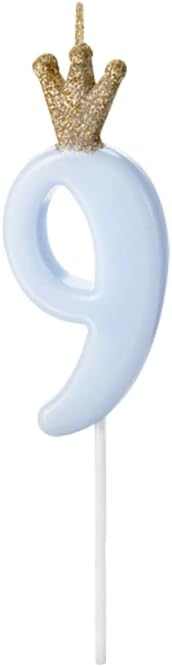 Decoraparty Bougie Anniversaire 3 Ans, Décoration Bleue Claire avec Chiffre et Couronne de Paillettes Or, Topper Gâteau pour Fêtes d’Enfants