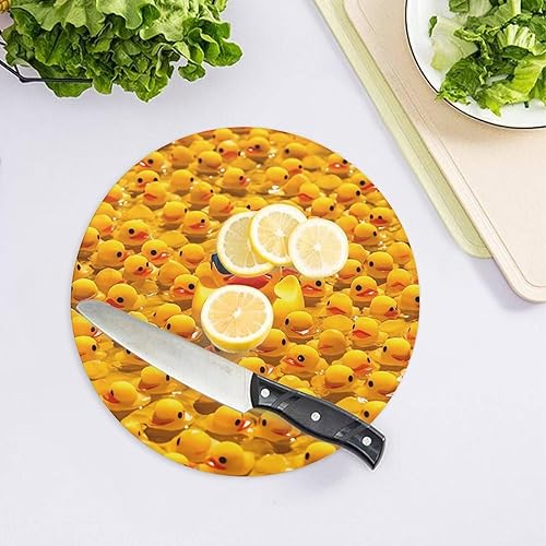 Planche à découper en verre trempé, motif canard jaune avec lunettes de soleil, 20 x 20 cm, planche à découper ronde, antidérapante, anti-rayures et résistante à la chaleur