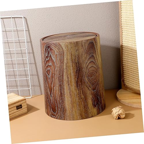 HOLIDYOYO Poubelle Rétro Bac De Recyclage Rustique Poubelle De Salle De Bain Poubelle Ronde Poubelle Avec Couvercle Basculant Poubelle Poubelle Seau à Déchets Alimentaires Light Brown Pp