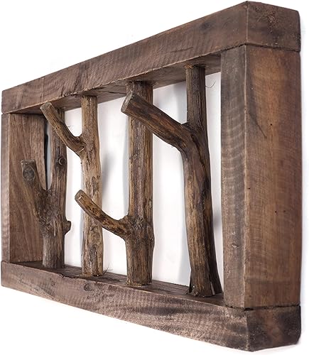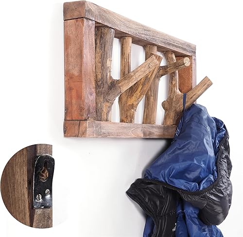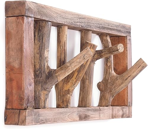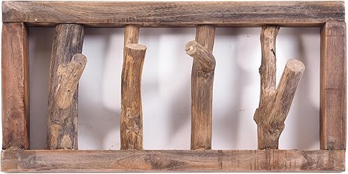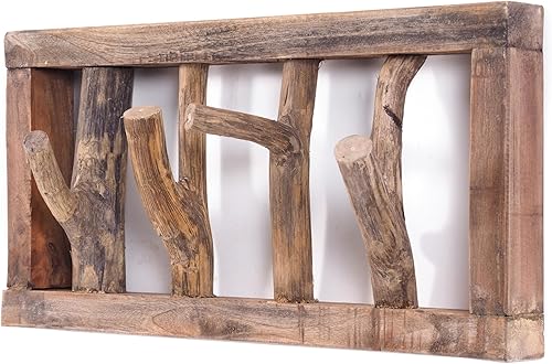 DESIGN DELIGHTS Jardinière murale rustique LIMB - 45 x 23 x ~ 10-13 cm (l x H x P) - Bois flotté - Barre à crochets - Couleur : 01 naturel vintage