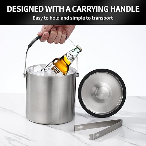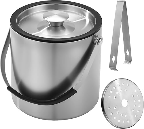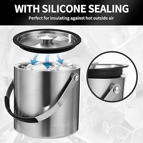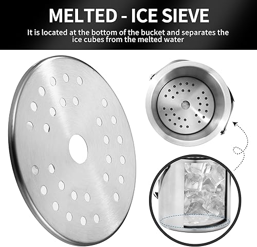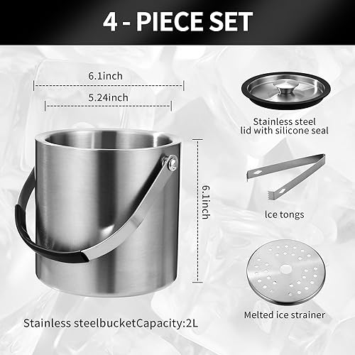 2L Seau a Glacon, Seau à Glace en Acier Inoxydable avec pince et passoire, Parfait pour les bars à Cocktails, les Fêtes, le Champagne, pour Conserver les Glaçons
