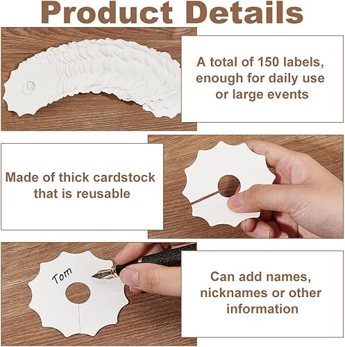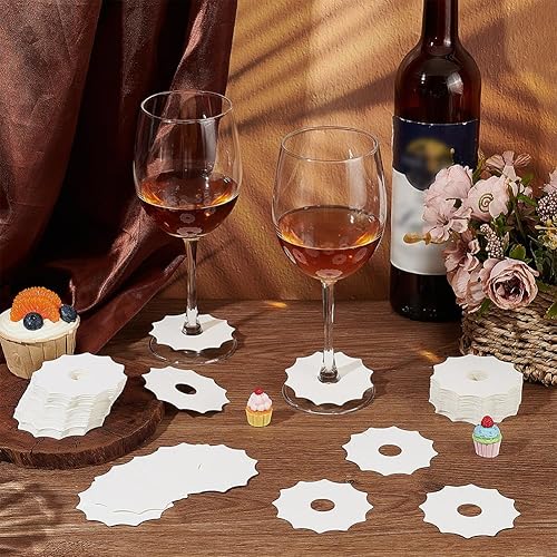 FINGERINSPIRE 150Pcs Marqueur de Verre à Vin en Forme D'Engrenage en Papier Beige pour Cocktail Champagne Étiquette D'Identification de Verre à Vin pour Mariage Fête Prénatale Fête D'Anniversaire