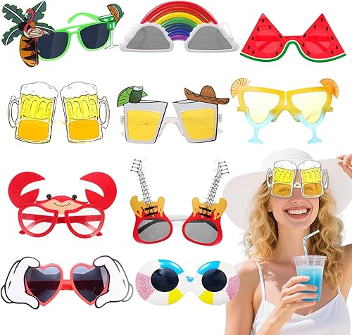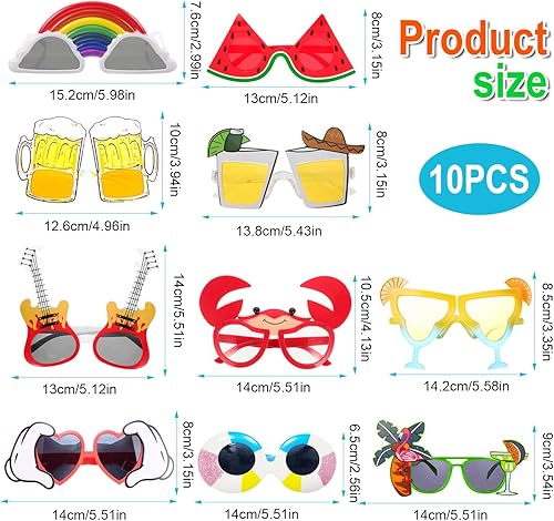 Theiuaoqwe 10 Lots de Accessoires Photobooth Comprenant Lunette Coeur Lunette Drole Lunettes Deguisement et Lunettes Fantaisie Idéaux pour les Photos sur la Plage ou dans un Kiosque Photo