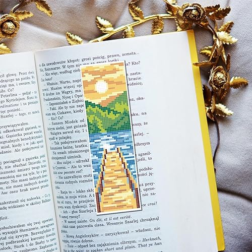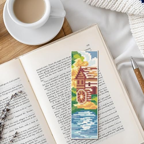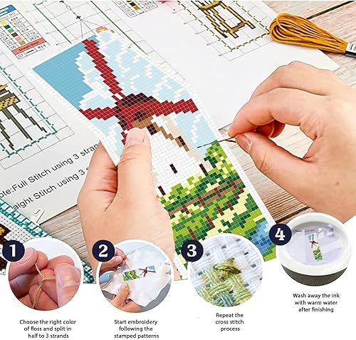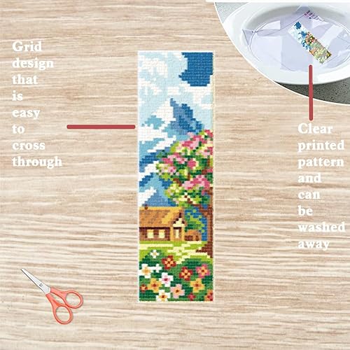 FREEBLOSS 6 ensemble de Kit de Marque Pages au Point de Croix Kit de Point de Croix Estampé Marque Page de Broderie Estampé de Scène Rurale avec Instructions Kits de Point de Croix 8''X2.4''