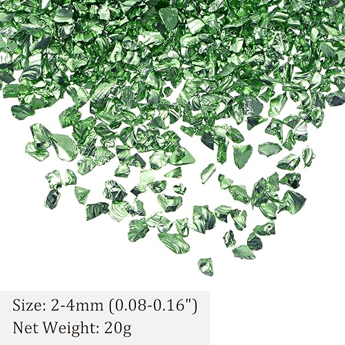 Kozelo Éclats de Verre Concassé - [2-4mm x 20g] Verre Métallique Irrégulier Vert pour Décoration DIY et Utilisation en Nail Art, Surface Électroplaquée