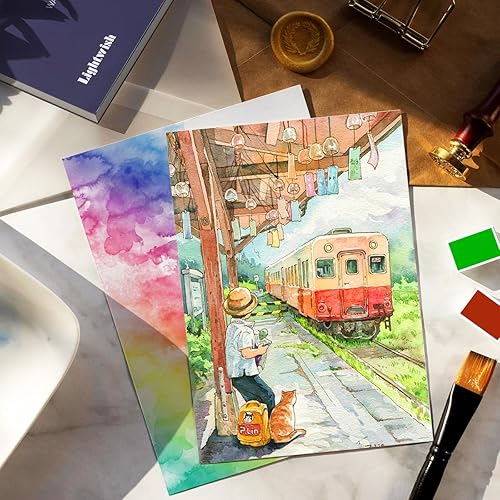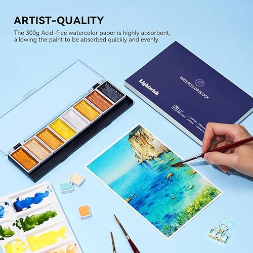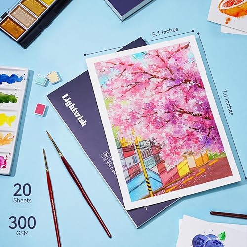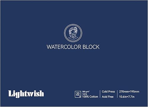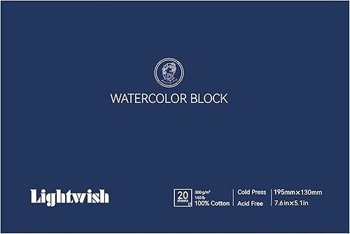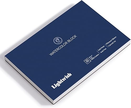 Lightwish Bloc de papier aquarelle, 100 % coton sans acide, 300 g/m², 20 x 13,8 cm, carnet de croquis aquarelle presse à froid pour artistes, adultes, étudiants, 20 feuilles