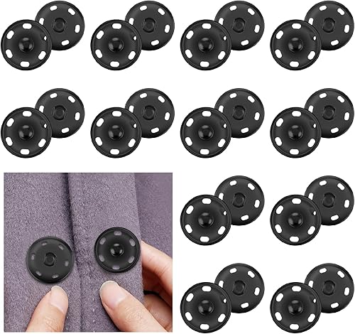 12 Set Boutons Pression pour Coudre de Grands Boutons Pression en Métal de 21mm Bouton Pression Noir pour Coudre des Vêtements des Robes des Sacs à Dos des Sacs à Main des Travaux Manuels